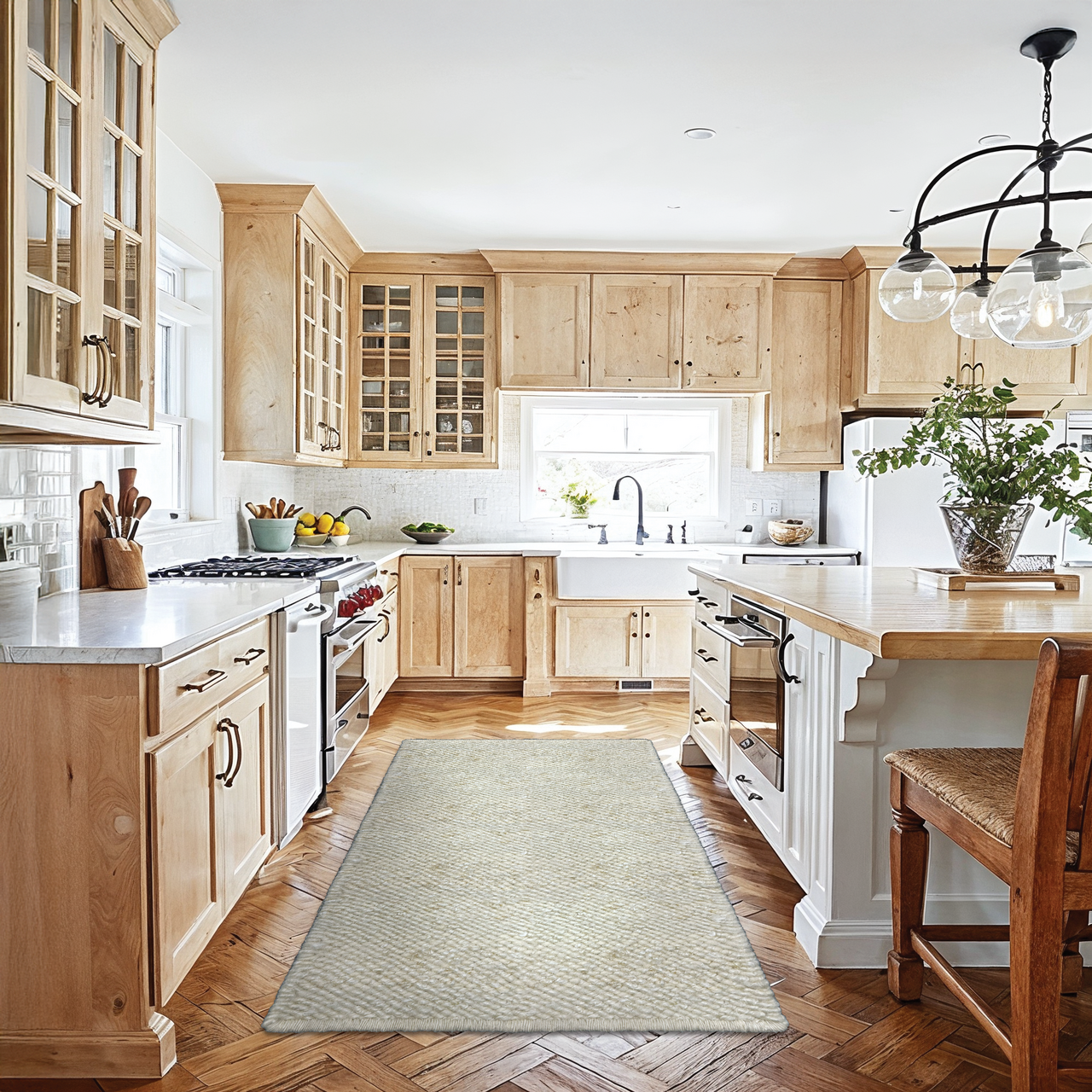 Mohair is celebrated in interior design for its smooth handle, natural sheen, and long-lasting performance, while Karakul wool introduces distinctive texture and strength. The combination of these fibres creates a balanced surface that is both tactile and durable, delivering comfort underfoot alongside structural integrity. Handcrafted construction enhances the material character, ensuring each rug reflects artisanal quality and lasting functionality.