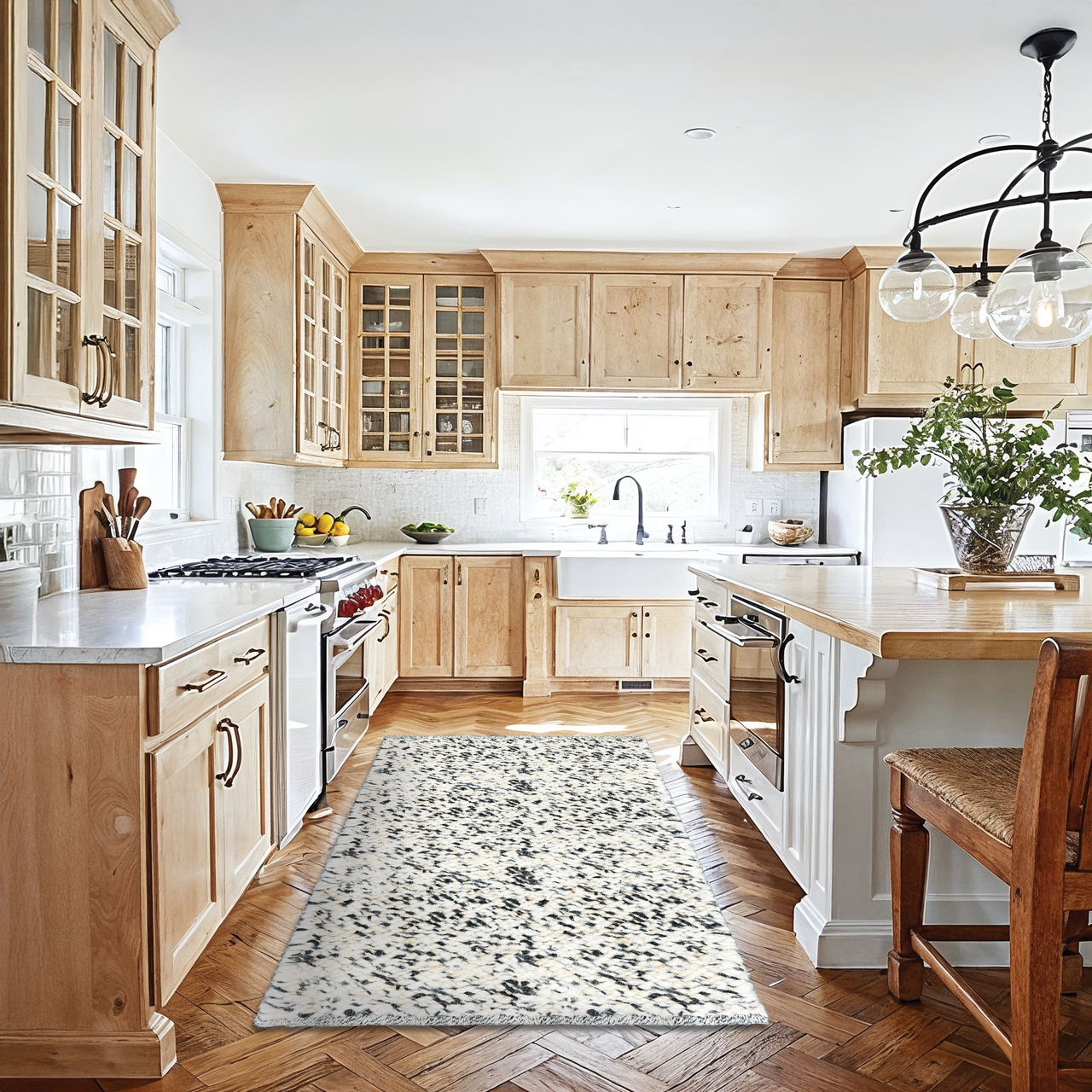 Karakul wool is valued for its strength and distinctive texture, while mohair contributes warmth, softness, and a subtle natural sheen. The considered combination of these fibres creates visual depth and tactile richness, balancing performance with artisanal character. Handcrafted construction ensures long-lasting structure while allowing the nuanced interplay of natural tones and colour to remain expressive yet cohesive.