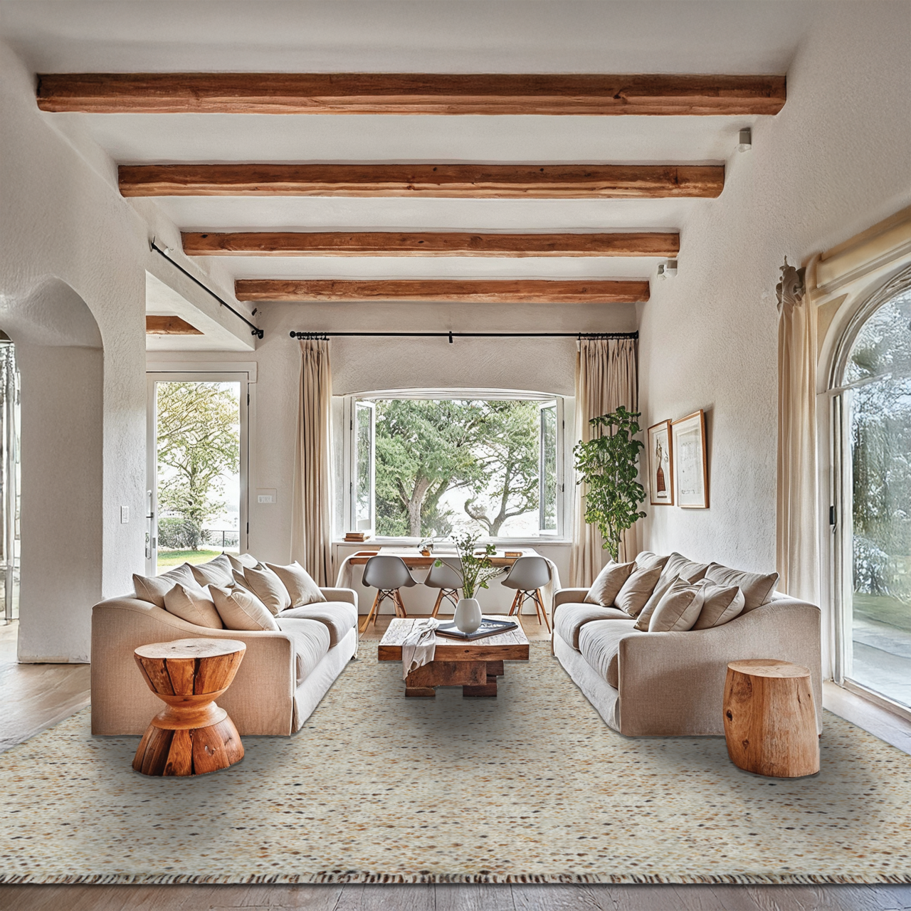 Ideal for living rooms, bedrooms, and lounge environments, the Savana Dark rug functions as a refined design element that introduces warmth, acoustic softness, and understated sophistication. Its darker natural palette and bouclé texture create a striking yet versatile foundation that complements both modern and timeless interior schemes.