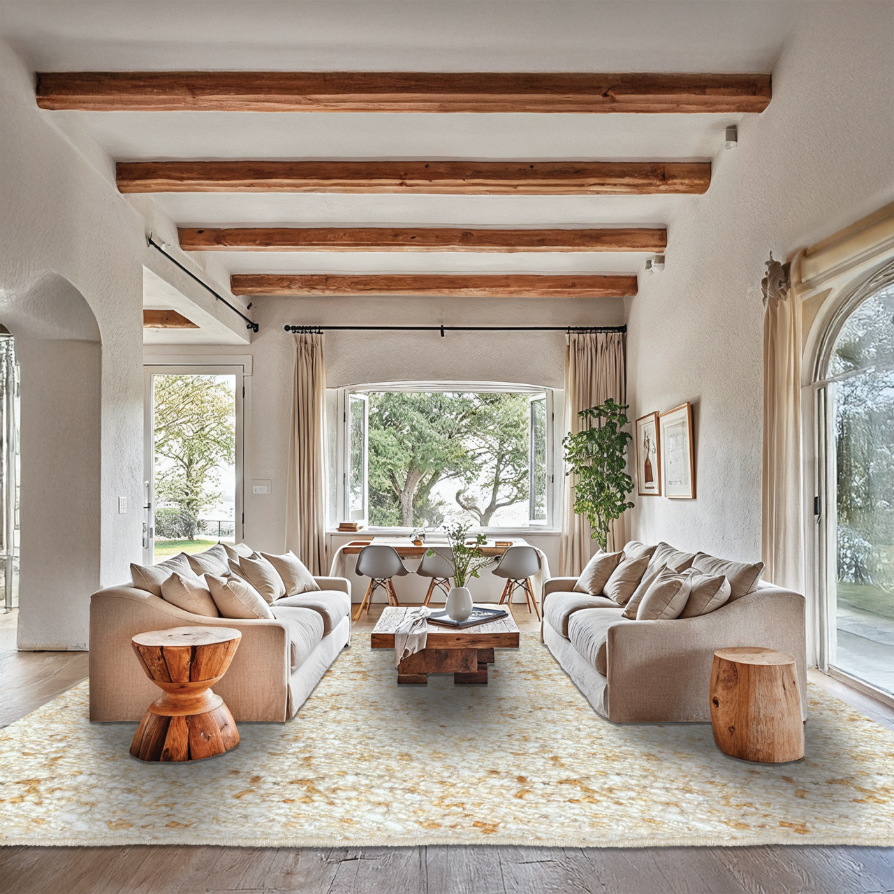 Ideal for living rooms, bedrooms, and layered interior schemes, the Tahat rug functions as a versatile design element that introduces warmth, acoustic softness, and understated sophistication. Its natural palette complements a wide range of interiors, making it a timeless addition for those who appreciate quality craftsmanship.