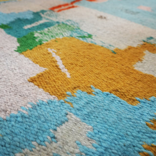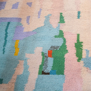 Sorbet and Sunscreen is a rug inspired by instinct rather than intention, shaped by sunlit memories, playful improvisation, and a deep appreciation for the natural world. Rooted in the freedom of childhood and the quiet magic of life close to the land, it evokes the sweetness of fleeting summers and the comforting warmth of sunlight on skin. Guided by music, emotion, and intuition, its colors are chosen for how they feel, and its textures for the memories they hold. Light yet grounded, this piece carries a quiet sense of resilience, inviting you to slow down, breathe, and create a space filled with calm, warmth, and uncomplicated beauty.